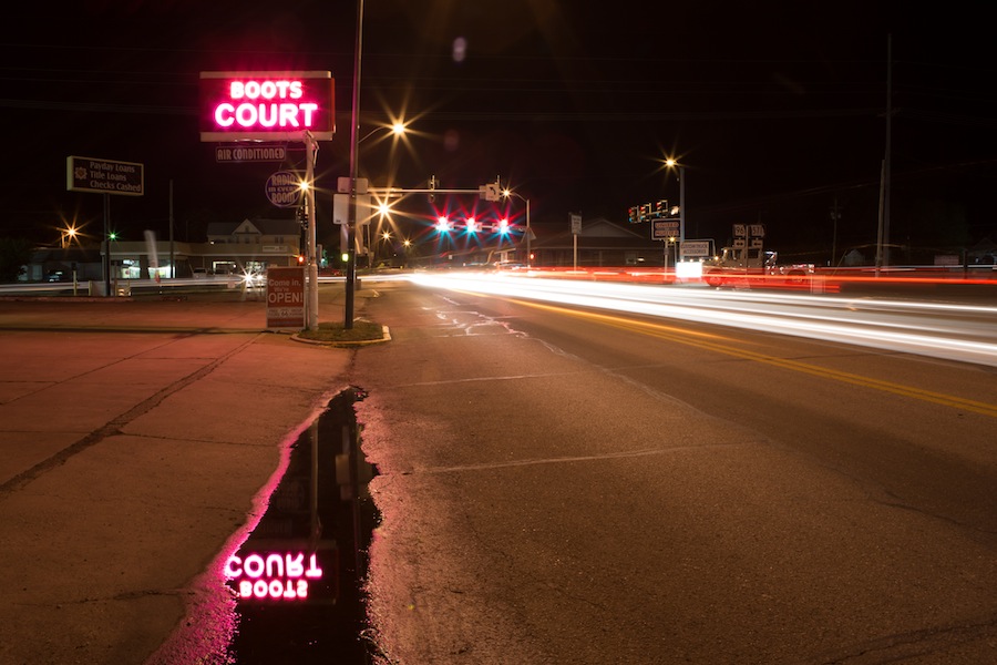 Es tut sich was im Boots Motor Court. Die „Wiederbeleuchtung“ – das Re-lighting des Motels ist vollbracht. Am 9. April wird das Ereignis regelrecht zelebriert. Zahlreiche Mitglieder der 66 Community haben sich in Carthage versammelt, um dabei zu sein, wenn das neue Neon in klassischem Stil die Mauern der Motels in sattem Grün erstrahlen lässt.