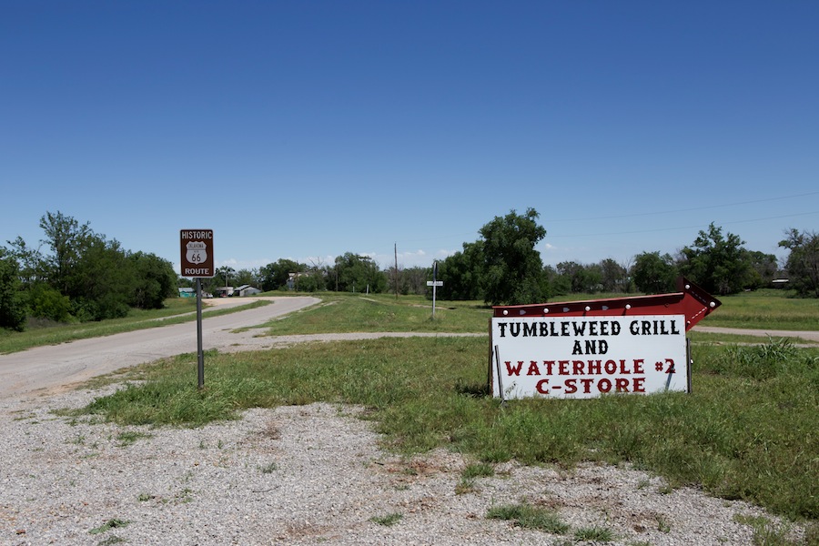 Man könnte Texola als öde beschreiben. Einsam, fast verlassen. Irgendwie unwirklich wirkt das kleine Nest in Oklahoma ganz nahe an der texanischen Grenze. Deshalb auch der Name. Texola – Texas und Oklahoma. Es gibt noch mehr dieser Texas Kombi-Namen für Grenzstädtchen zu anderen Staaten: Texarkana oder Texmex zum Beispiel. Wir sind heute in Texola an einem frühen Nachmittag. Es ist Mai, die Sonne scheint und es ist still. Nichts los hier, man sieht keinen Menschen auf der Straße, die die Route 66 ist. Die Interstate braust nördlich vorbei, der gesamte Traffic lässt Texola links bzw. rechts liegen. Einzig vereinzelte Route 66 Touristen passieren das Örtchen auf ihrer Durchreise.