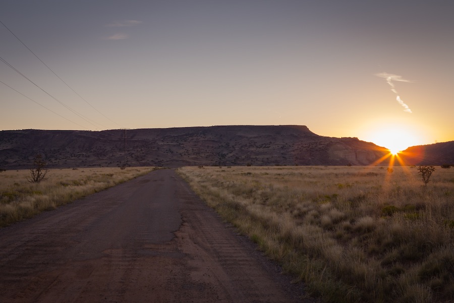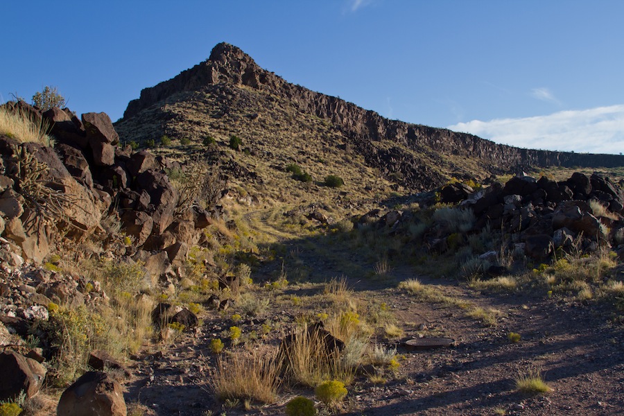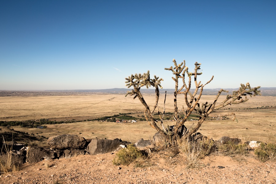 Für uns geht‘s aufwärts, als wir am frühen Morgen, kurz nach Sonnenaufgang am Fuße der Mesa unsere Autos abstellen. Ein Stück der alten 66 haben wir gerade hinter uns, den Santa Fe River über die Brücke in La Bajada Village überquert und jetzt soll es losgehen.
