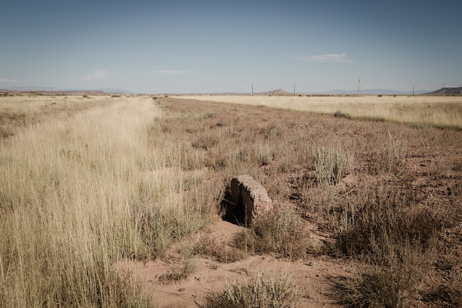 Auf geht‘s auf den Los Lunas Loop, ein Teil der Route 66, der um Albuquerque herum führt. Zur Abwechslung fahren wir mal ein größeres Stück auf der 66, wobei es hier nichts wirklich Besonderes zu sehen oder zu fotografieren gibt. Zumindest nicht in Los Lunas und den umliegenden Wohn-und Geschäftsgegenden. Dann wieder raus aufs Land und dort halten wir einfach an der Straße und schauen uns eine weitere Old Route 66 Brücke bzw. deren Überreste an, nicht ohne vorher einen weiteren Zaun überwunden zu haben.