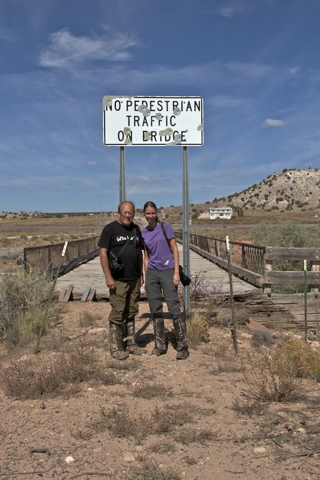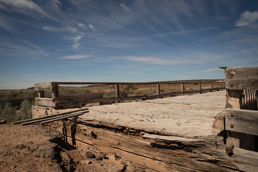 Unser nächstes Ziel ist – wie sollte es auch anders sein – eine Brücke! Bei Allentown führt das alte Bauwerk über den Rio Puerco. Von der Straße ist kaum noch etwas zu sehen, die Brücke aber hat standgehalten. Benutzbar ist sie schon lange nicht mehr. Dafür hat man längst direkt daneben einen neue gebaut. Nicht mal Fußgänger lassen sie rüber, wie man am Schild, das wohl auch als Zielscheibe für Schießübungen dient, unschwer erkennen kann.