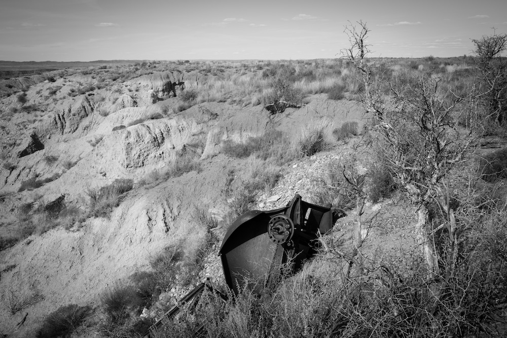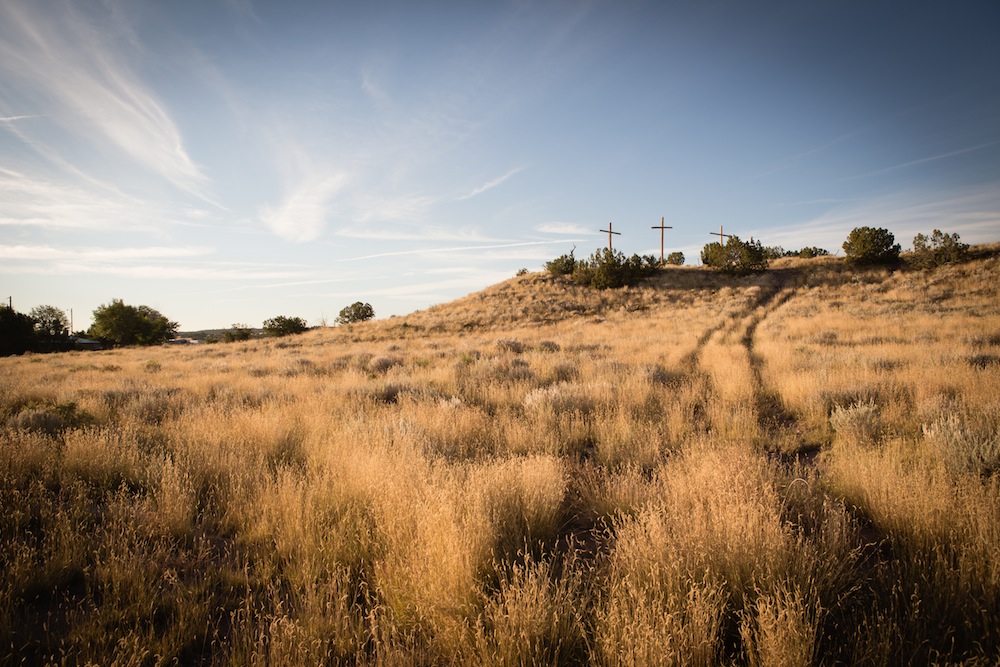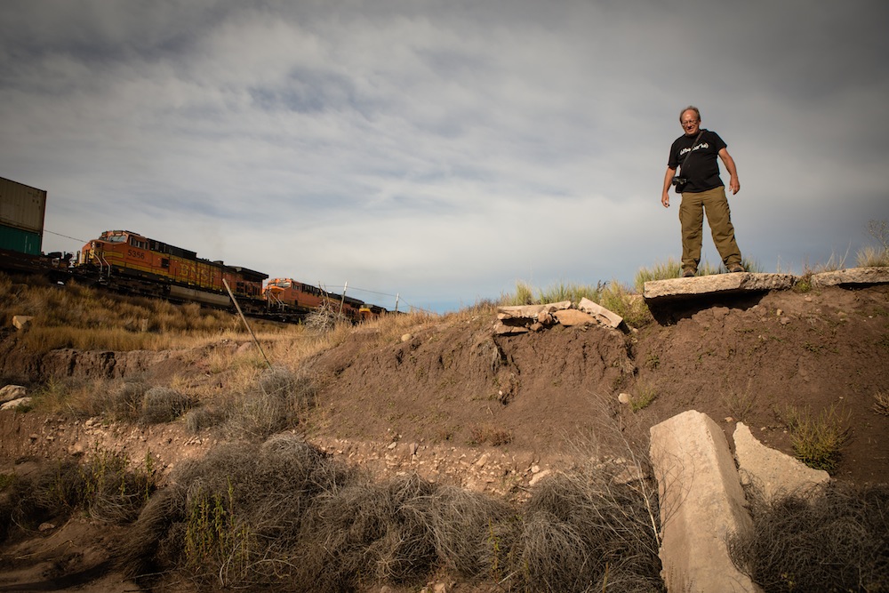 Nick hat noch einen weiteren Navigation Arrow auf dem Programm, diesmal in der Nähe von Prewitt, direkt an der Interstate 40. Die knapp 20 Meilen von Grants hierher sind schnell geschafft, das Wetter spielt auch wieder mit, so dass wir auch heute morgen und den ganzen Tag über beste Foto-und Wanderbedingungen haben. Der Prewitt Arrow liegt auf einem kleinen Hügel über dem sich drei große Holzkreuze erheben, deren Bedeutung uns aber nicht bekannt ist.
